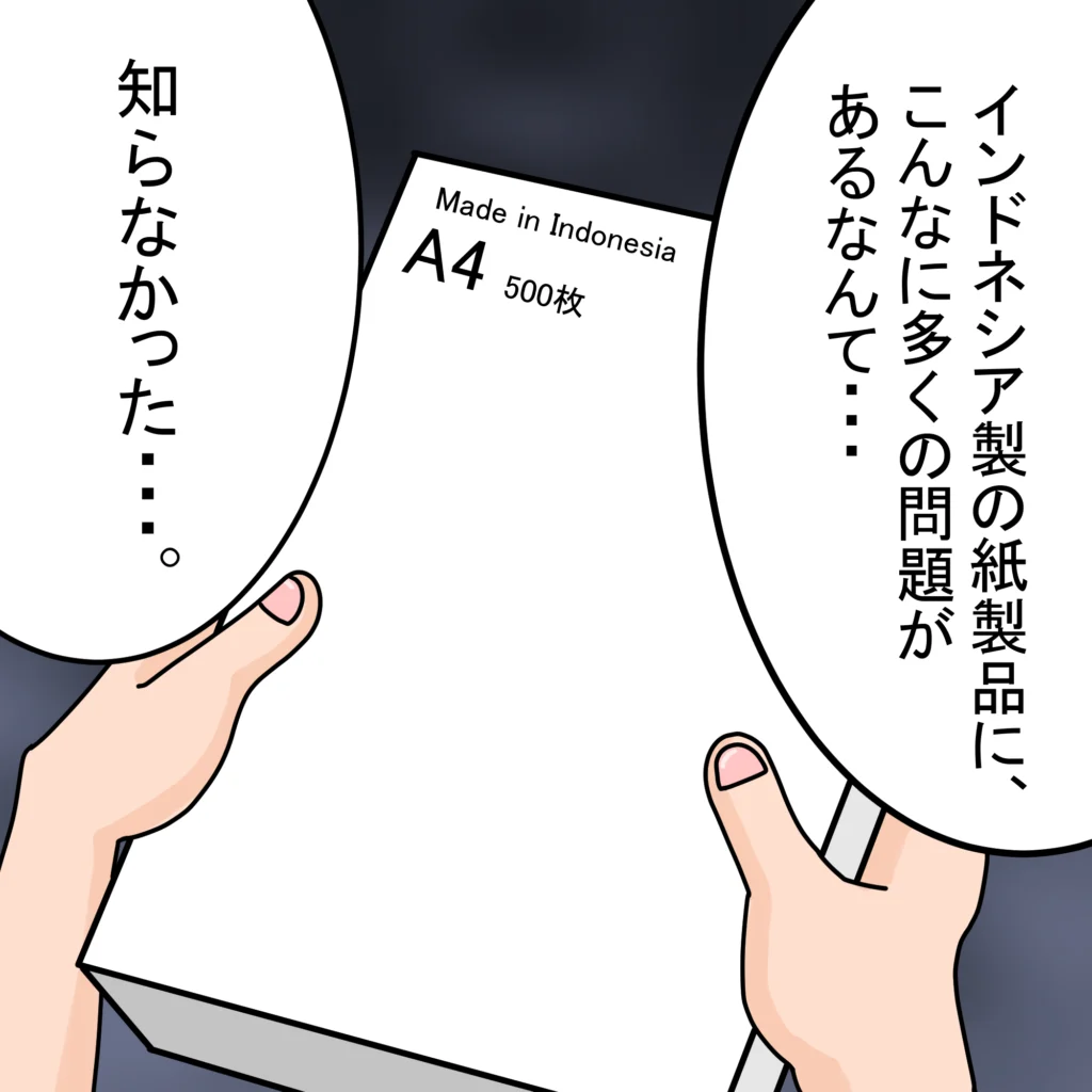 日本においてもこの問題に向き合い、インドネシア製紙製品を取り扱わないと決定した企業もあります。しかし、依然として日本の多くの企業が、この問題を知りながら、今なお取引きを行い、インドネシア製紙製品を販売しています。