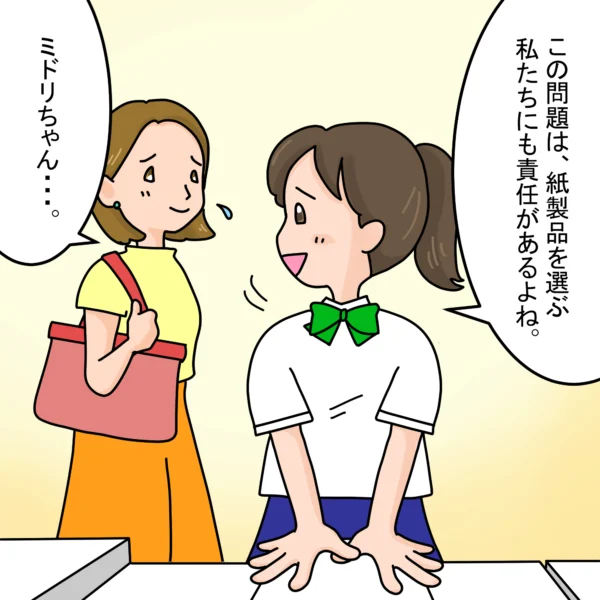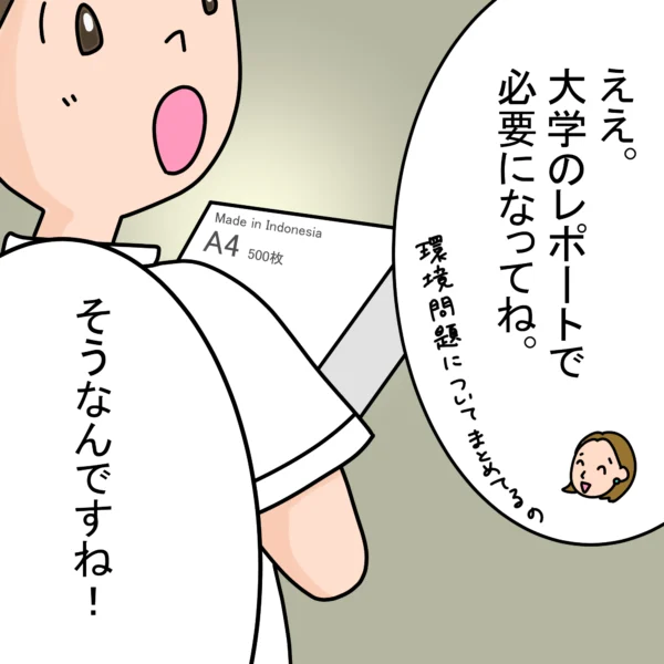 国内製造の『古紙100 パーセント再生紙』を選ぶことが、環境と熱帯林保護の観点から考えてベストです。