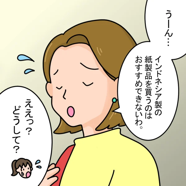 日本においてもこの問題に向き合い、インドネシア製紙製品を取り扱わないと決定した企業もあります。しかし、依然として日本の多くの企業が、この問題を知りながら、今なお取引きを行い、インドネシア製紙製品を販売しています。