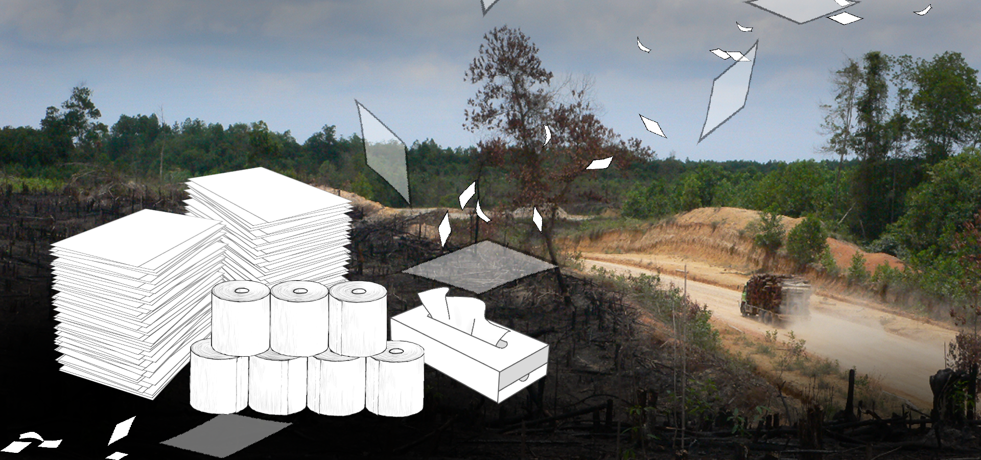 『環境保全』のためと言いながらも熱帯林を破壊し、人々の暮らしを脅かすこのような行為は、今なお繰り返し起きています。 そして、そのような背景で製造された紙製品は日本へ多く輸出されているのです。